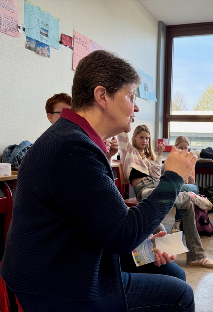 Schwester Antonia trug ganz normale Kleidung und erzählte lebhaft von ihrem Leben und ihren Erfahrungen. Wir durften unsere Fragen stellen und konnten aus dem Gespräch mit ihr viel mitnehmen.